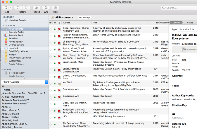 The crude way is to directly download research articles from a scientific database such as IEEE, ACM, or ScienceDirect, and then simply to store the files inside a folder, e.g., titled “research” or more specifically under a sub-folder named after the article theme, e.g., “differential_privacy”. There are other, perhaps better, ways of organizing these, for instance, by publication date, research authors, tags, or some combination of this, and so on. While this may work, especially for small research projects, your folder structure can become pretty cumbersome for large projects – in particular those involving 100s of files. Here, one key thing is how to retrieve the articles pertaining to your topic of writing, and later how to reference them. Yes, you may rely on the operating system indexing tools sometimes (e.g., Spotlight indexing on Mac) or on some other program (e.g., Evernote) but that may not be enough. Example, how can you categorize the information further, e.g., tagging articles, adding search terms, assigning a rating score, etc. Here, a nice tool that can come to the rescue is a free software called Mendeley.