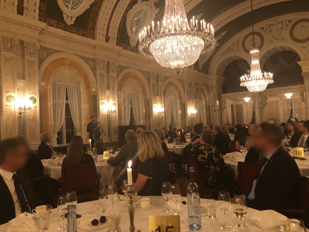 On Wednesday, October 13th, I was invited to a graduation dinner with the new doctoral grads, professors, and distinguished guests at the incredibly magnificent and historic Rådhus (City Hall). At that time, I was awarded the honour of delivering the doctoral speech. Here is a photo of me giving the speech in front of 150 guests.